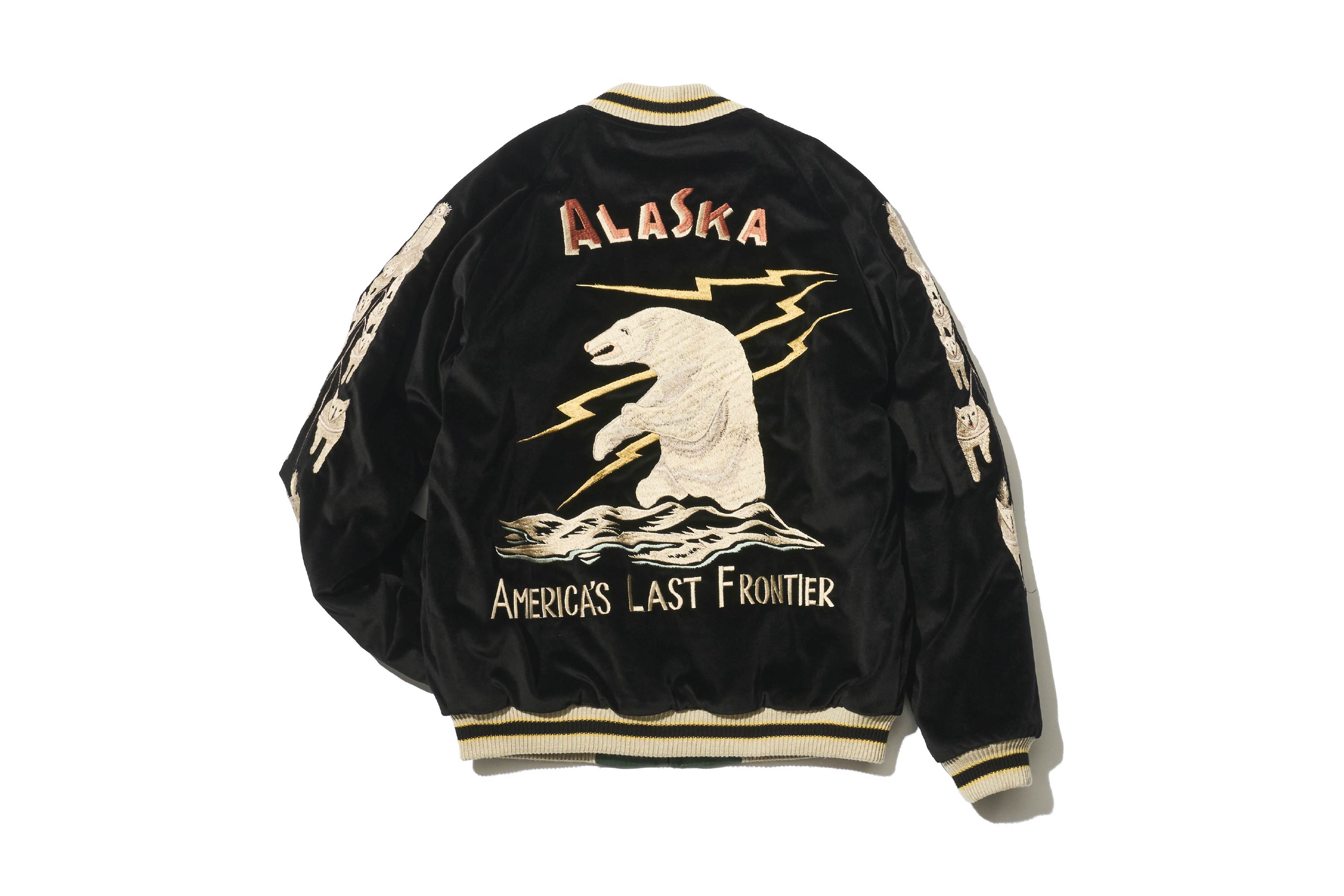 鷲、虎、龍。前面我們列舉了一系列裝飾著橫須賀外套、既狂野又神聖的生物,不過在這裡稍微來點變化。接下來要介紹的主題既不是動物,甚至也稱不上是生物,而是位於美國最北端的寒冷之地「ALASKA(阿拉斯加)」。