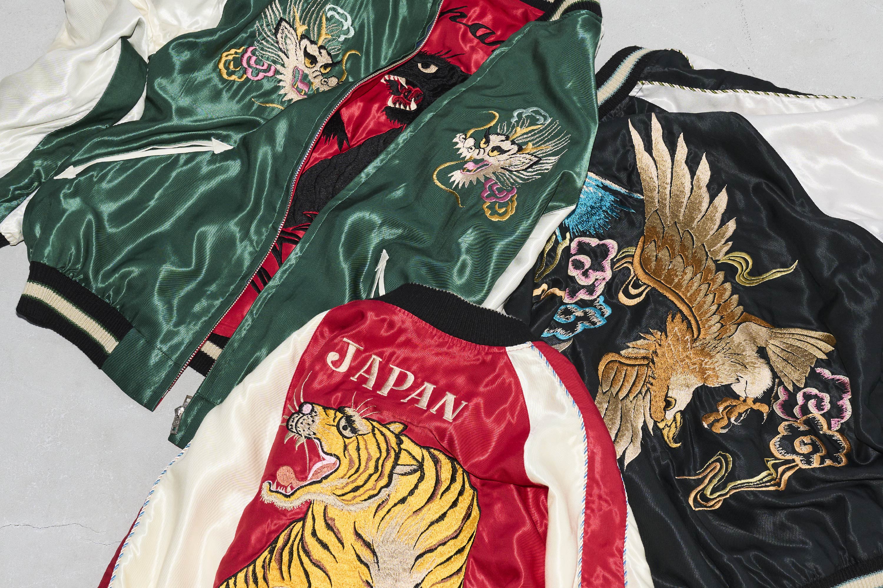 關於圖案的話題先告一個段落。接下來,將進入一段激起求知慾的休息時間,將焦點放在「Stajan(棒球外套)」與「Sukajan(橫須賀外套)」的差異上。兩者因語感相似而容易被混淆,但其實是完全不同的東西。不過在和製英語這一點上,是相同的。