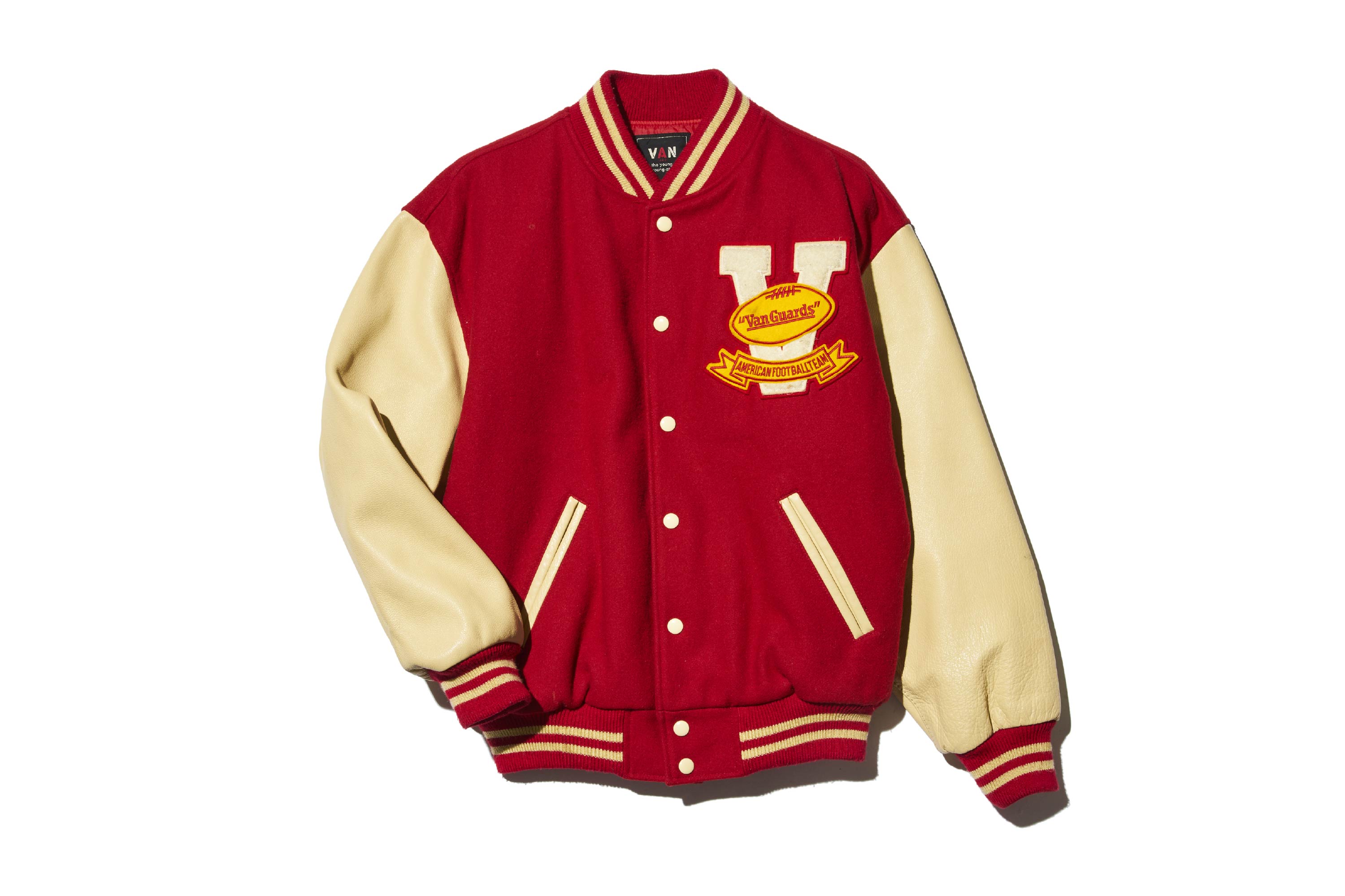 這款是由〈VAN〉所打造的經典棒球外套。最具代表性的就是雪尼爾刺繍布章。