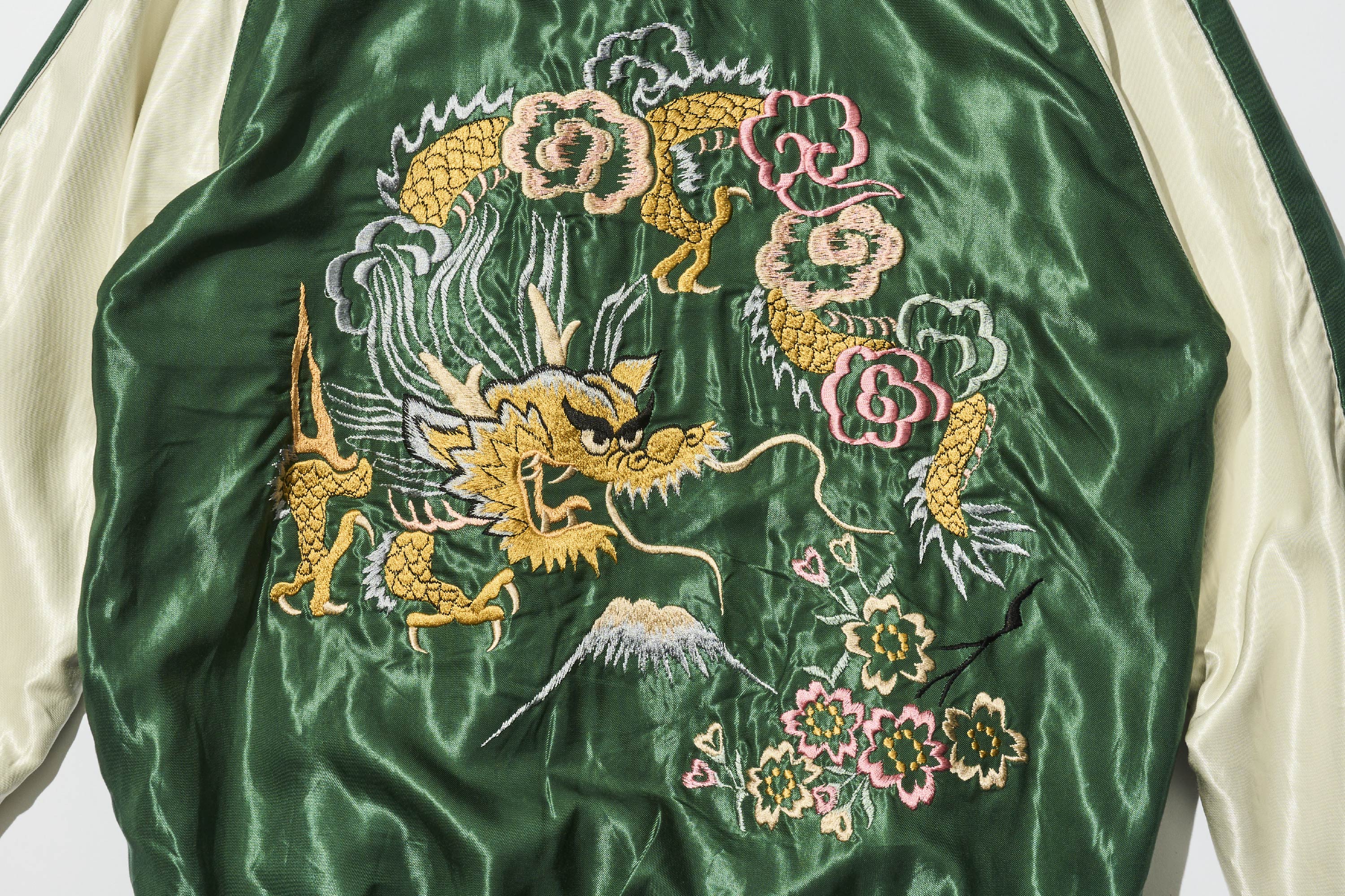 這是翱翔天際的天龍「Sky Dragon」刺繍。有一種說法是它和與橫須賀外套(Sukajan)命名由來相關。
